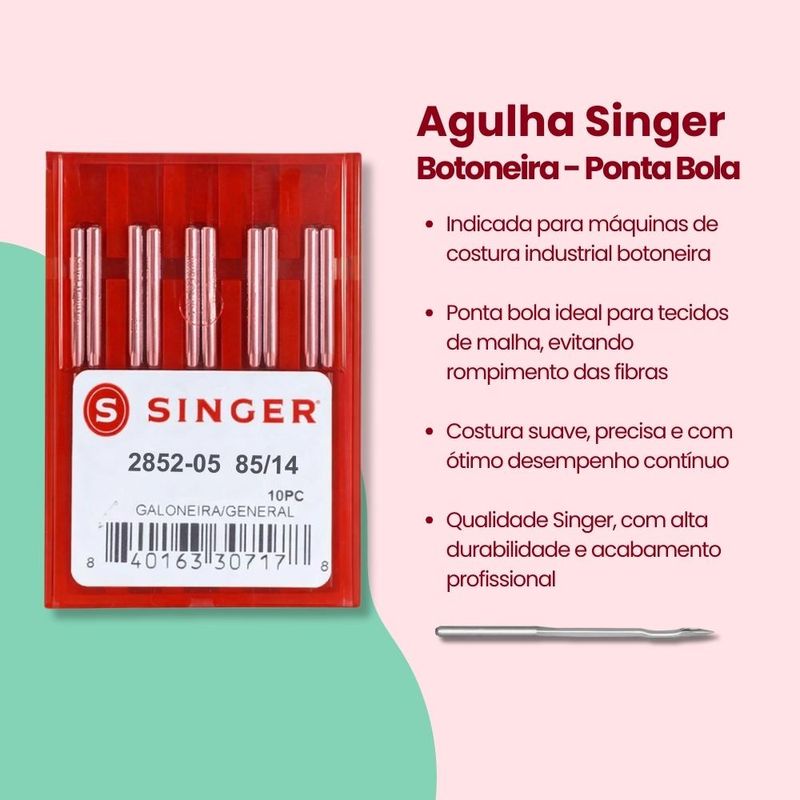 Agulhas e AlfinetesAcessórios de CosturaAgulhasSingerAgulha de MáquinaAgulha Singer para Botoneira 2852/14 Blister com 10un