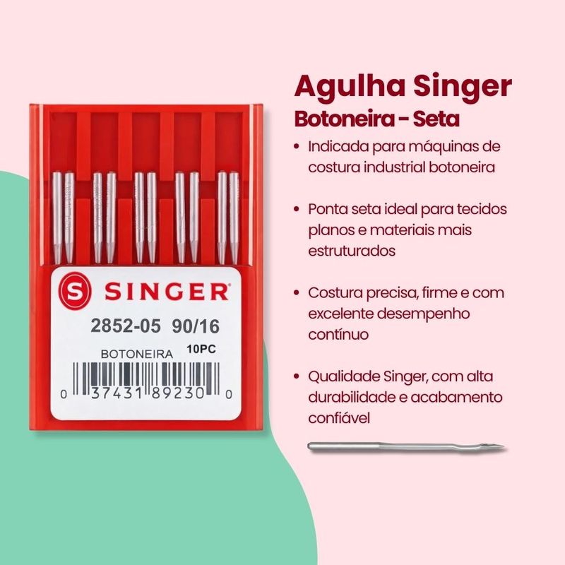 Agulhas e AlfinetesAcessórios de CosturaAgulhasSingerAgulha Singer para Botoneira 2852/16 Blister com 10un