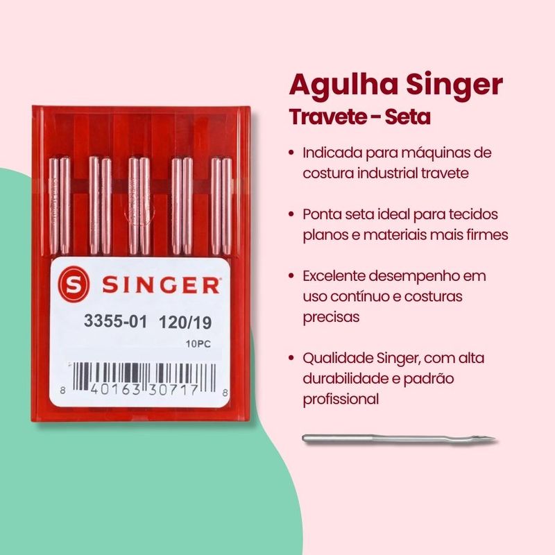 Agulhas e AlfinetesAcessórios de CosturaAgulhasSingerAgulha de MáquinaAgulha Singer para Travete 3355/19 Blister com 10un