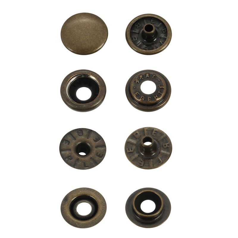 Botão de pressão forte, de ferro, para tecidos médios e pesados.Obs.: Este botão requer matriz para aplicação, utilizar máquina de fixação manual ou pneumática
