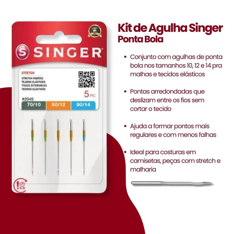 Kit de Agulha Ponta Bola Singer 2045 10/12/14 Blister com 5un