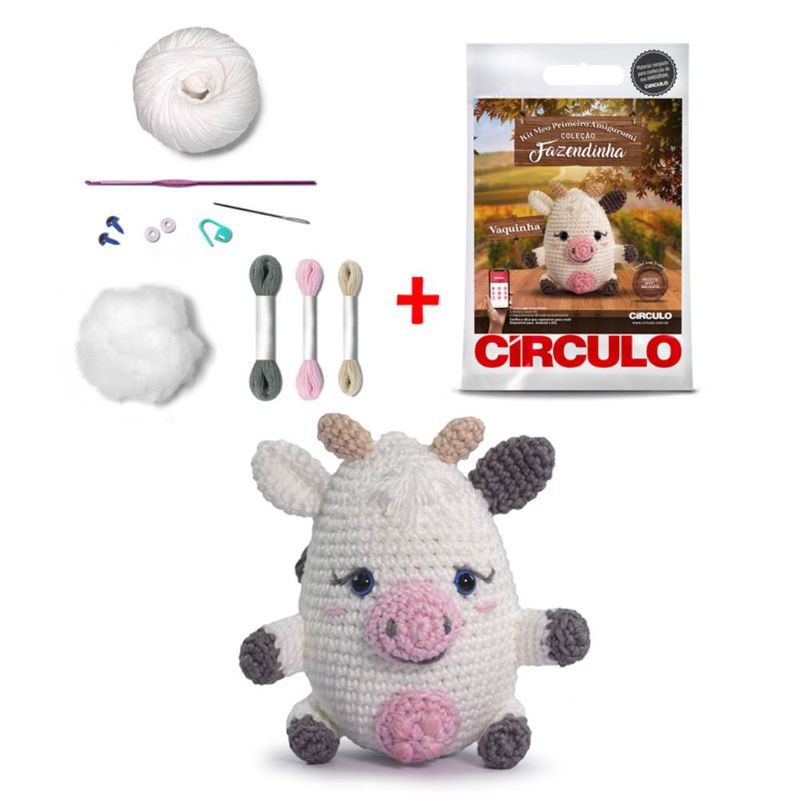 Este Kit foi desenvolvido especialmente para quem é iniciante no amigurumi, possui receitas simples e fáceis para quem está iniciando. São três personagens super fofos: Porquinho, Pintinho e Vaquinha.